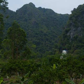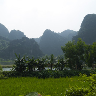 Ces baignades de fin journée seraient moins exotiques si elles se passaient dans la baignoire de la salle de bain. Contrairement à la lumière tungstène du néon, réfléchissant sur le carrelage, le paysage vietnamien transporte. Notre première grosse découverte fut la baie d’Ha Long. Ce bijou de mère nature est le fruit de l’ancienne activité volcanique du nord du pays. Tels des arbres, les massifs rocheux sortent de l’eau donnant un rassemblement de petites îles très élancées. Toutes sont recouverte d’une intense végétation. Après le jaune de l’Iran, le vert des plantes et le rouge de la terre prédominent. Des grandes plaines du littoral aux montagnes de l’arrière pays, toute échelle est démultipliée. Les feuilles de bananier pourraient servir de couverture, un éléphant pourrait se cacher derrière le tronc des arbres, l’intensité de la végétation de la jungle empêche de voir à plus de cinq mètres. (Cliquez pour agrandir)